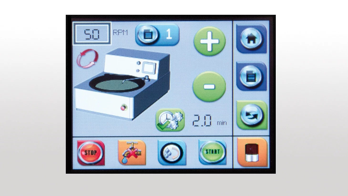 Tato bruska/leštička je ovládána pomocí dotykového displeje s možností programování a uložení až 9 programů.