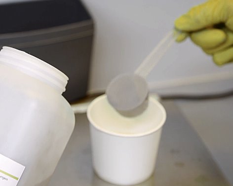 Plastová dávkovací lžíce pro přesné dávkování prášku zalévacích hmot.