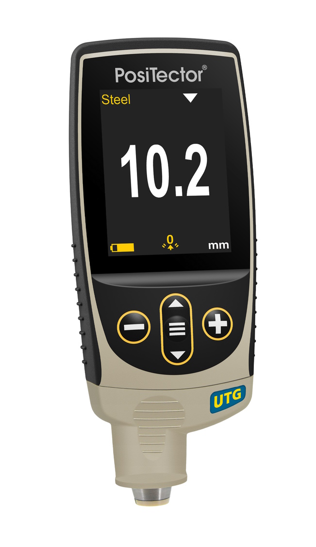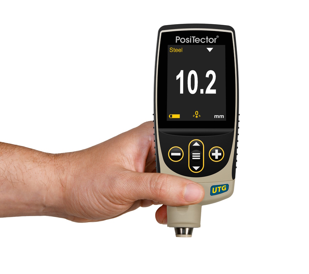 Připojením sondy k tělu přístroje vzniká PosiTector UTG - ultrazvukový tloušťkoměr od společnosti DeFelsko. Tento přístroj měří tloušťku stěn materiálů pomocí ultrazvukové technologie. Je ideální pro měření účinků koroze nebo eroze na nádrže, potrubí nebo jakoukoli strukturu, kde je přístup omezen na jednu stranu. Využít lze předprogramované režimy pro běžné materiály nebo snadno zadejte svůj vlastní. Režim Min Scan - provádějte nepřetržité čtení a zaznamenávejte minimální/maximální tloušťky - ideální pro rychlou inspekci.