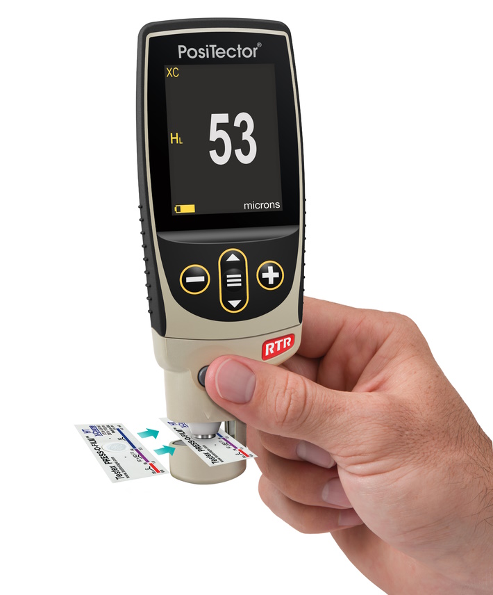 Čtečka replikační pásky PosiTector RTR 3D; Replikační páska zaznamenává parametry profilu povrchu, které následně čte a ukládá hodnoty měřidlo PosiTector se sondou RTR 3D. Kompaktní sonda měřící...