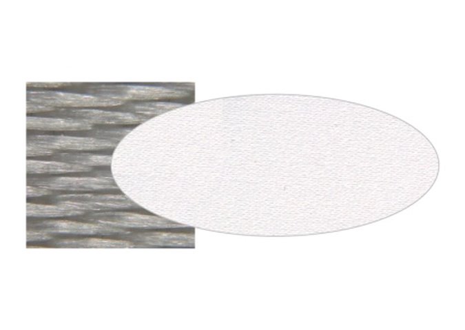 Saténová tkaná přírodní vlákna. Vynikající povrchová úprava a rovinnost, zachování hran, zejména na vzorku složeném z materiálů různé tvrdosti nebo s povlakem.