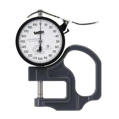 Číselníkový mikrometr s jednotkami v mikronech vhodný pro měření profilu povrchu u tryskané oceli. Mikrometrické tloušťkoměry Testex měří drsnost povrchu otryskaných povrchů prostřednictvím