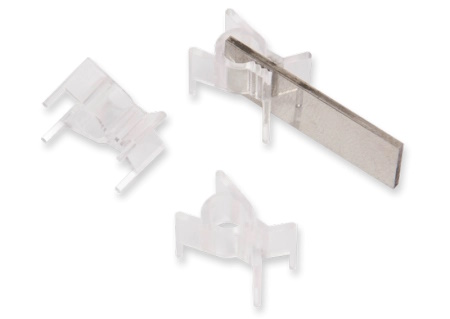 Plastové svorky "klipy" pro použití se vzorky zalitými pryskyřicí vytvrzovanou zastudena.