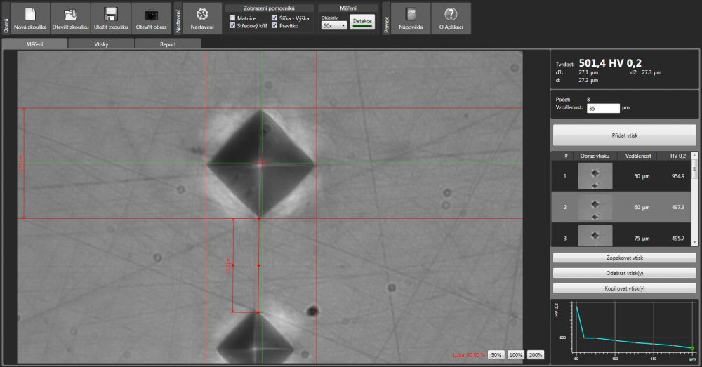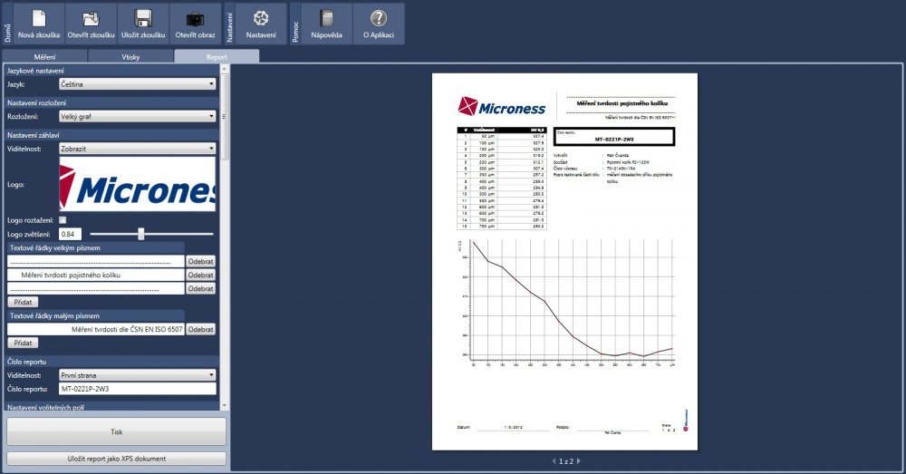 Program MICRONESS pro vyhodnocování mikrotvrdosti