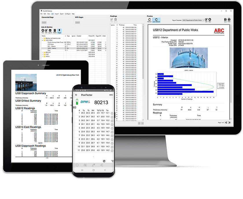 Jednoduché, intuitivní uživatelské rozhraní. Import naměřených hodnot přímo z měřidla přes USB, WiFi nebo starší verze softwaru PosiSoft Desktop. Pro přístroje PosiTector starší generace (SN méně než 700 000 - prodané před rokem 2011) je k dispozici starší software.