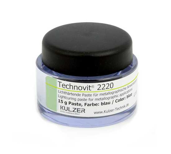 Technovit 2220 je viskózní kapalina modré barvy případně bezbarvá. Využívá se k přesným otiskům struktury v místech, kde není možné vytvořit klasický metalografický vzorek. Díky výjmečnému složení lze po vytvrzení pozorovat i nejjemnější detaily ve více jak 1000x zvětšení. Teplotně stálá hmota s jednoduchou aplikací. Oproti klasickému otisku není třeba aplikovat napařovací vrstvu.