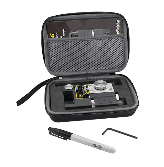 Každá sada je dodávána v pouzdře a obsahuje měřidlo s imperiálními i metrickými stupnicemi, 3 řezné hroty (každý pro 1x, 2x a 10x), imbusový klíč, permanentní černý fix, jednu AAA baterii, kalibrační certifikát a návod.