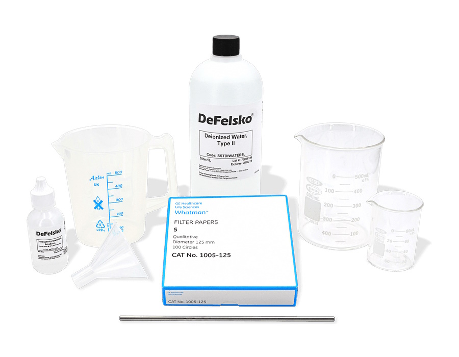 Sada pro testování abraziv se sondou PosiTector SST (prodávaná samostatně). Měří koncentraci ve vodě rozpustných nečistot v abrazivech pro tryskání.