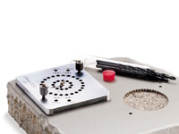 Vrtací šablona pro 50 mm panenky a vrtáky (10 ks vrtáků 4 mm) pro oddělení testované plochy. Vhodné pro silnější nátěry betonu.