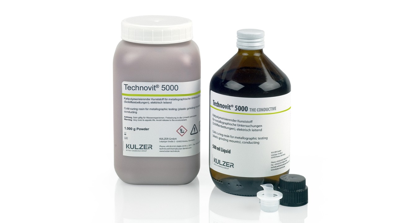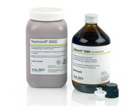 Technovit 5000 je dvousložková hmota (prášek : tvrdidlo, poměr míchání 2:1 ), která je po vytvrzení vysoce vodivá. Tato zalévací hmota je vhodná pro všechny aplikace, kde se požaduje vodivost zalévací hmoty (např. SEM zkoušky, elektrolytické leptání).